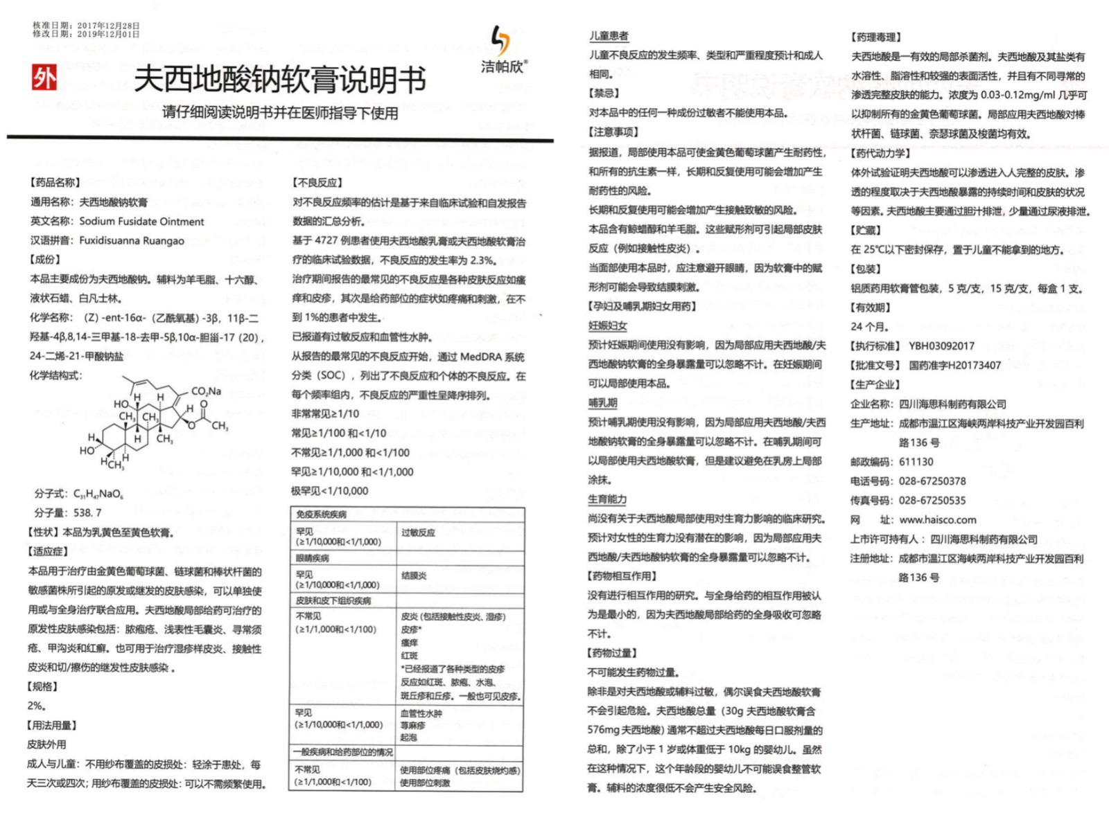 本品用于治療由金黃色葡萄球菌、鏈球菌和棒狀桿菌的敏感菌株所引起的原發(fā)或繼發(fā)的皮膚感染,可以單獨(dú)使用或與全身治療聯(lián)合應(yīng)用。夫西地酸局部給藥可治療的原發(fā)性皮膚感染包括:膿皰瘡、淺表性毛囊炎、尋常須瘡、甲溝炎和紅癬。也可用于治療濕疹樣皮炎、接觸性皮炎和切/擦傷的繼發(fā)性皮膚感染