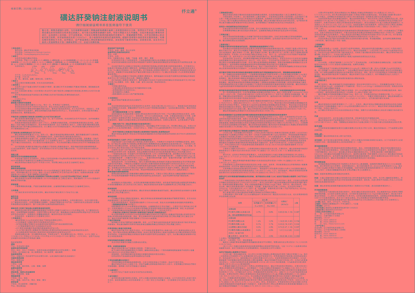 【通用名】磺達(dá)肝癸鈉注射液